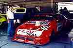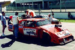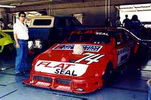 - The Flat Seal race car in the garage just before the big race