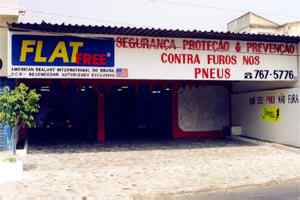 - The outside of one of the many Flat Free tire service stores in Brazil